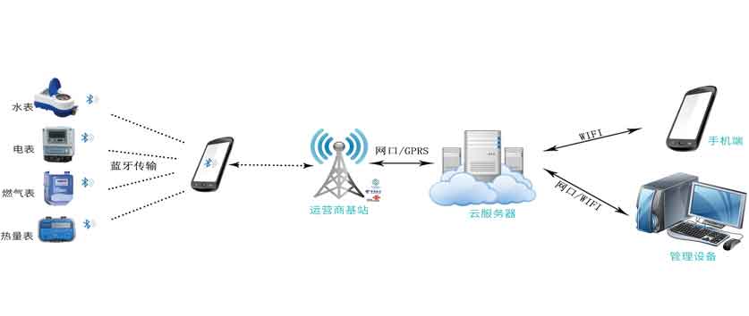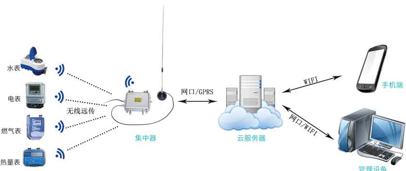 有線遠傳四表集抄,是由表端(無線遠傳水表、有線無線遠傳電表、無線遠傳冷熱計量表、無線遠傳燃氣表)+LoRa/LoRaWAN(集中器)+云服務器組成,管理人員可以通過任意一臺連接WAN的電腦進行抄表控制。