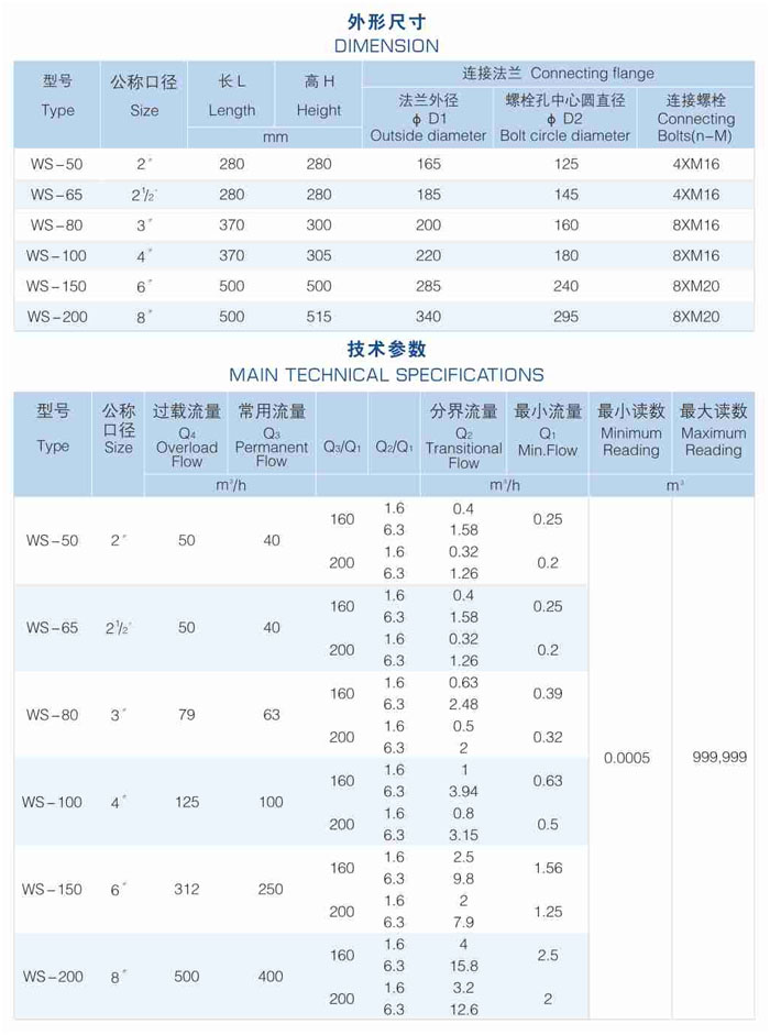 7.WS型水表技術參數優于水平旋翼式水表。
